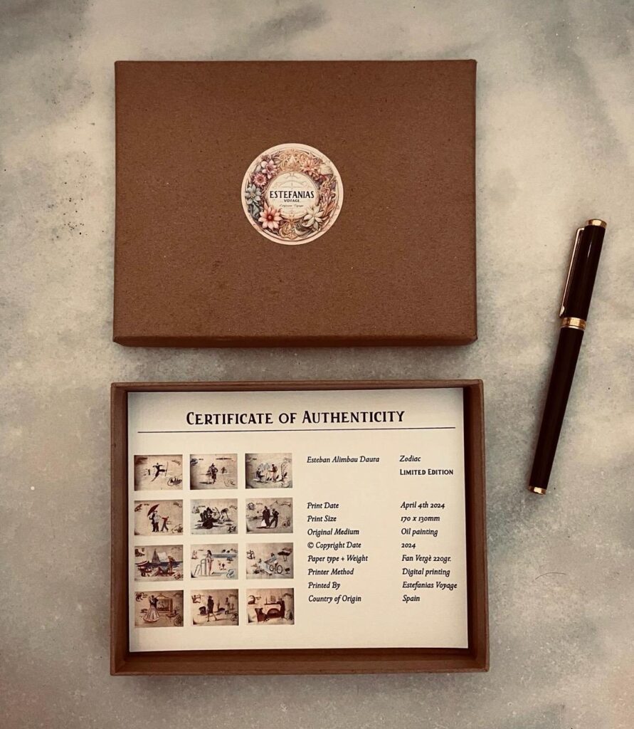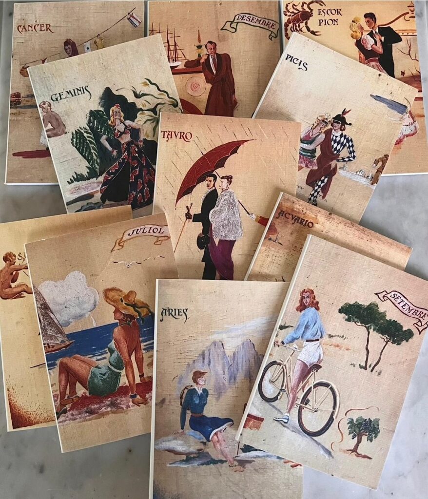 Unique and original limited edition cards printed in premium paper, painted by hand in oil in the thirties by Estefania’s maternal grandfather Esteban Alimbau Daura.